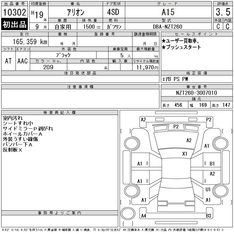 TOYOTA ALLION - лот 10302