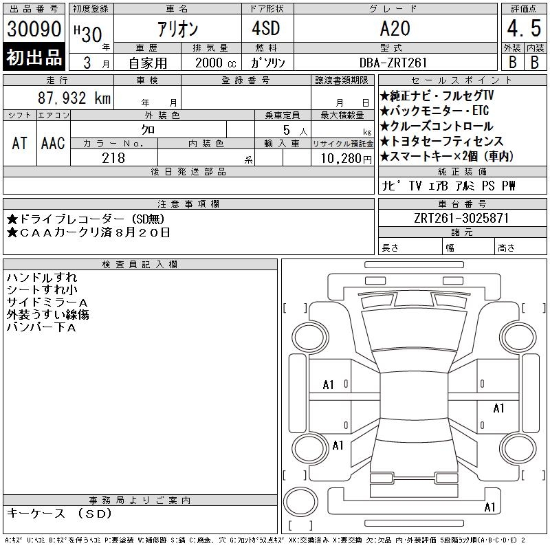 TOYOTA ALLION - лот 30090