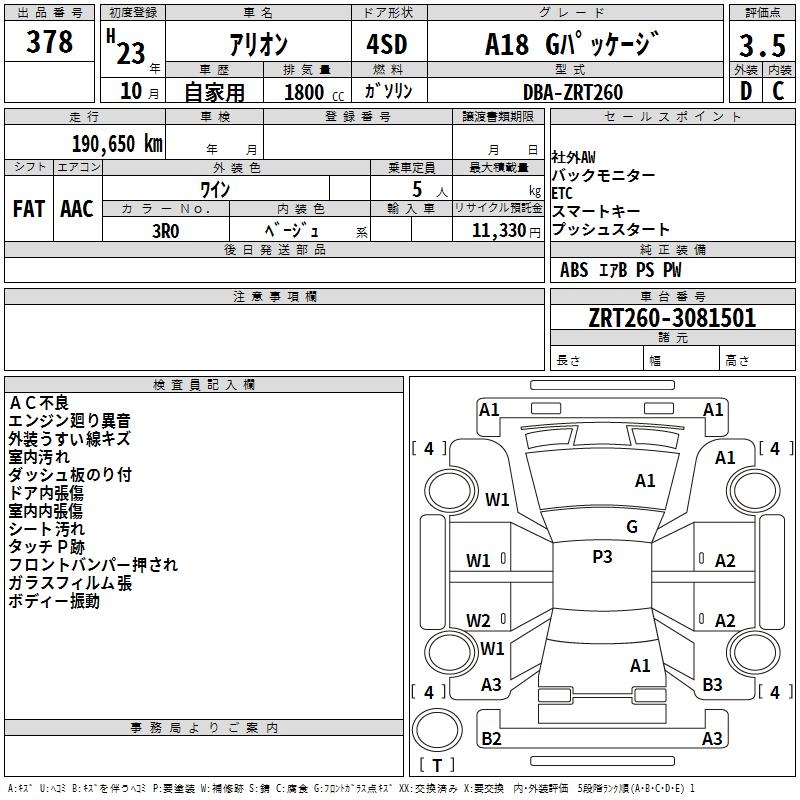 TOYOTA ALLION - лот 378