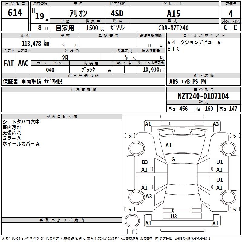 TOYOTA ALLION - лот 614