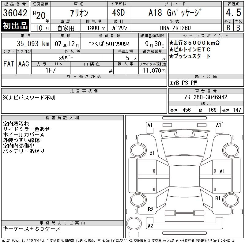 TOYOTA ALLION - лот 36042