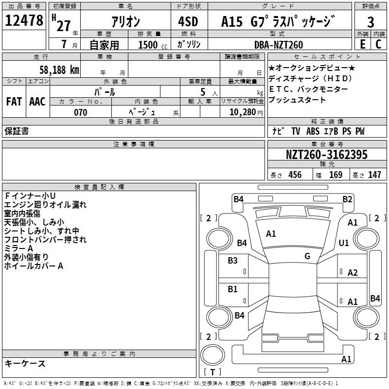 TOYOTA ALLION - лот 12478