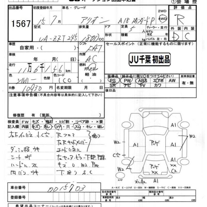 TOYOTA ALLION - лот 1567