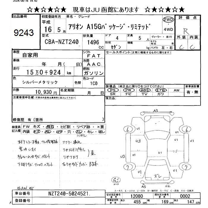 TOYOTA ALLION - лот 9243