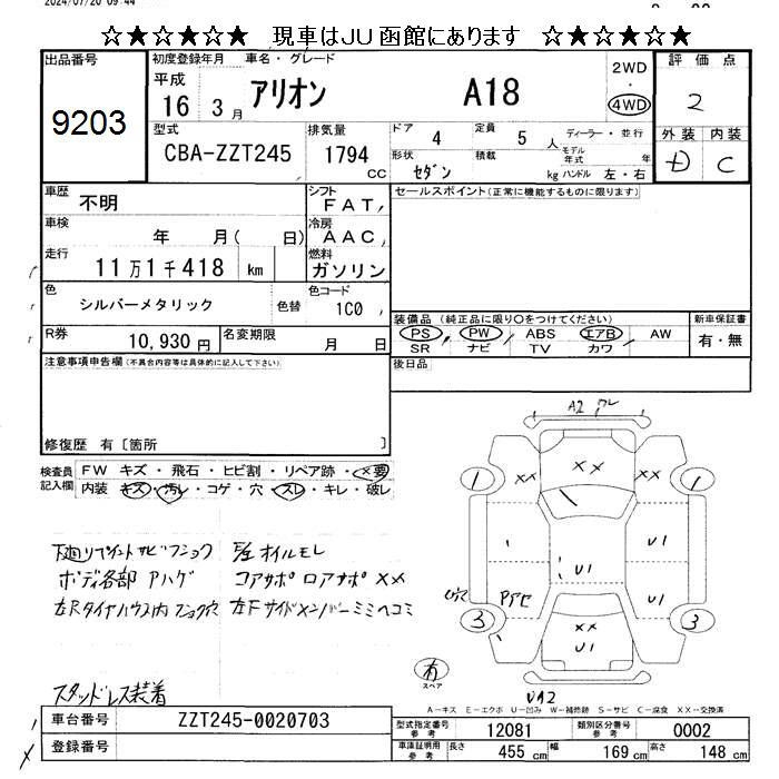 TOYOTA ALLION - лот 9203