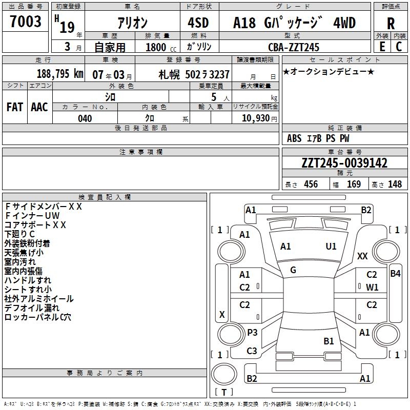 TOYOTA ALLION - лот 7003