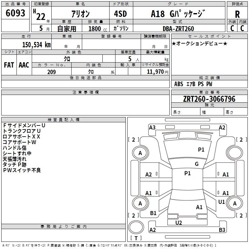TOYOTA ALLION - лот 6093