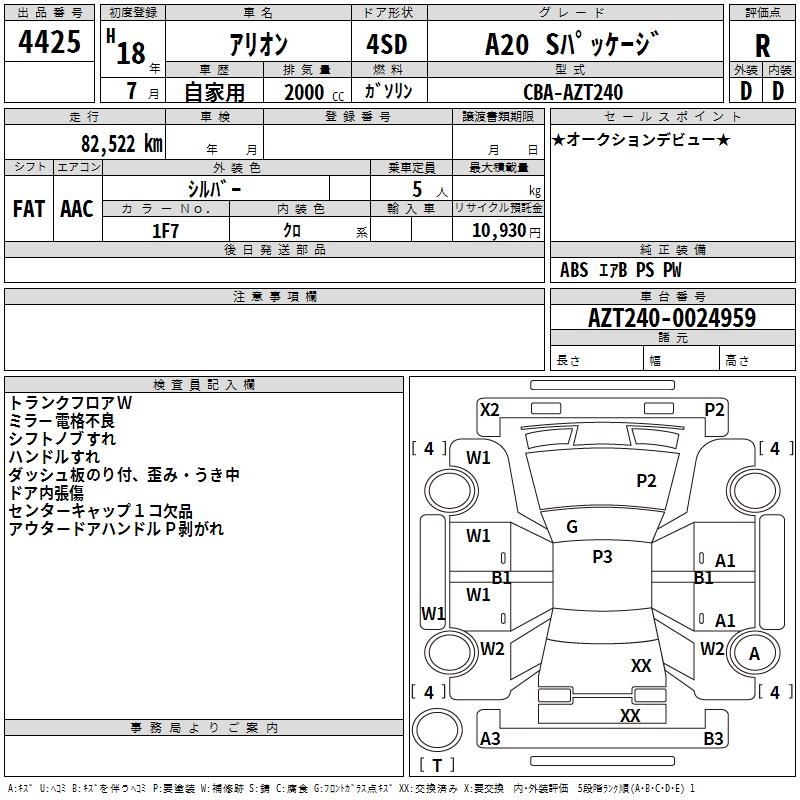 TOYOTA ALLION - лот 4425