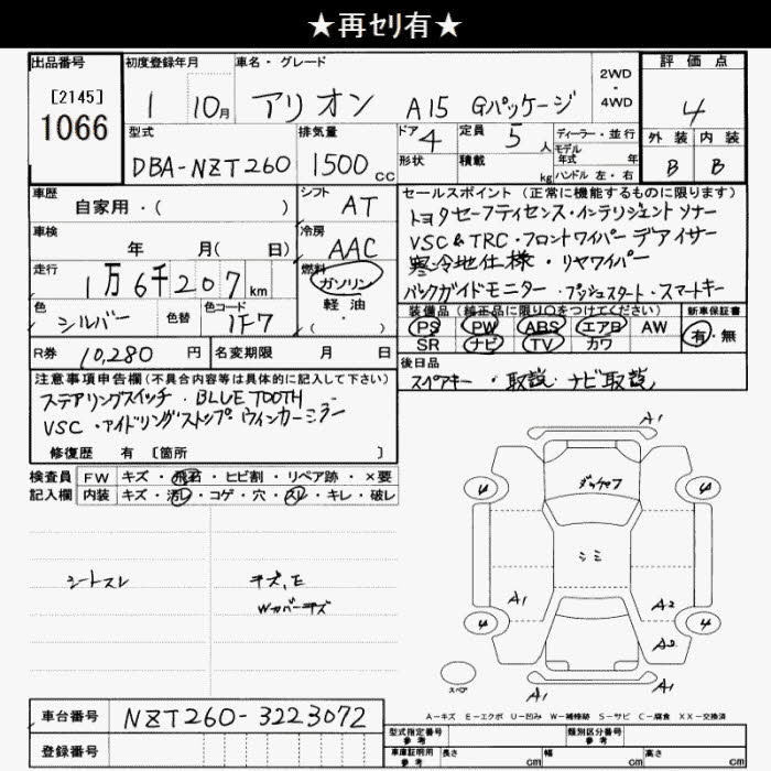 TOYOTA ALLION A15G package - лот 1066