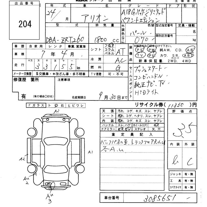 TOYOTA ALLION A18 G package limited - - лот 204