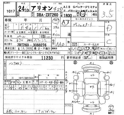 TOYOTA ALLION - лот 1017