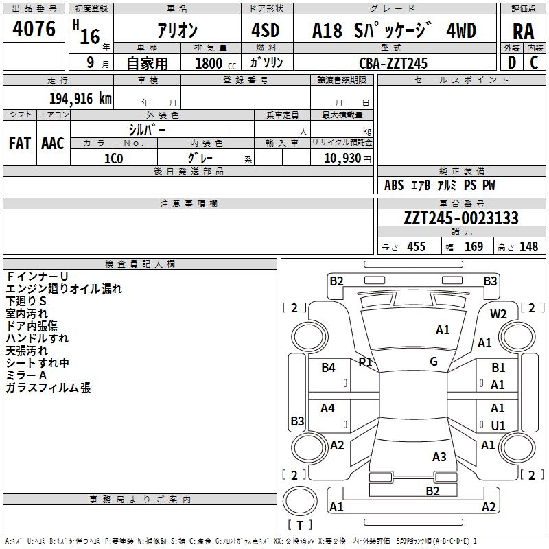TOYOTA ALLION - лот 4076