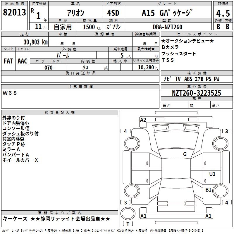 TOYOTA ALLION - лот 82013