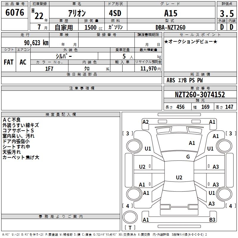 TOYOTA ALLION - лот 6076