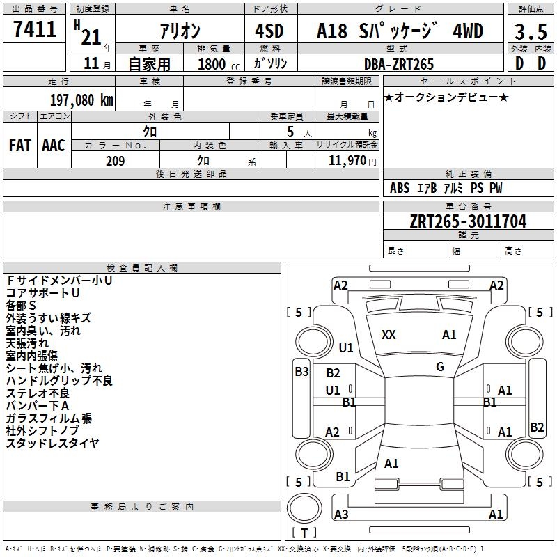 TOYOTA ALLION - лот 7411