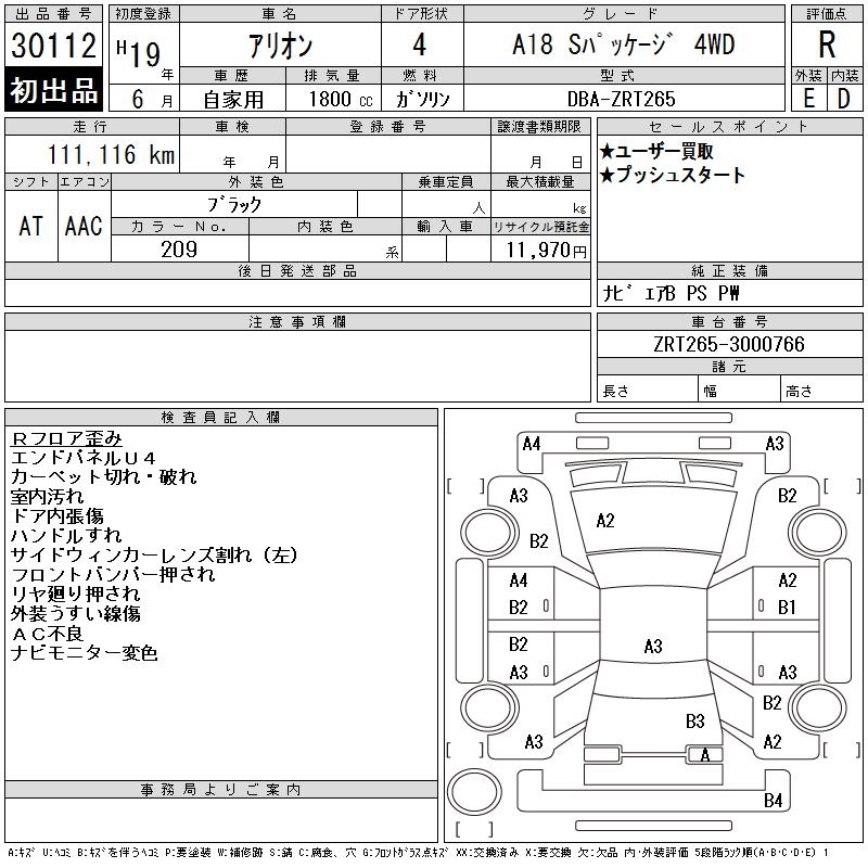 TOYOTA ALLION - лот 30112