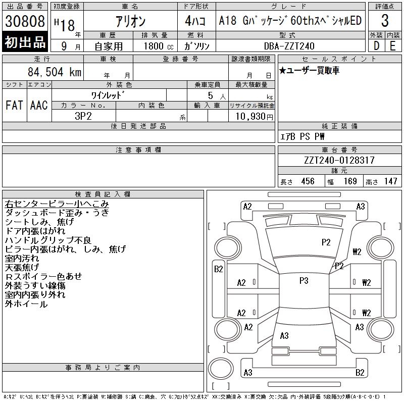 TOYOTA ALLION - лот 30808