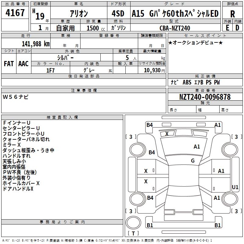 TOYOTA ALLION - лот 4167
