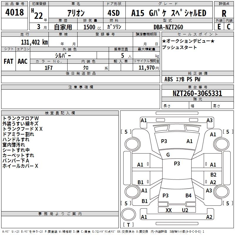 TOYOTA ALLION - лот 4018