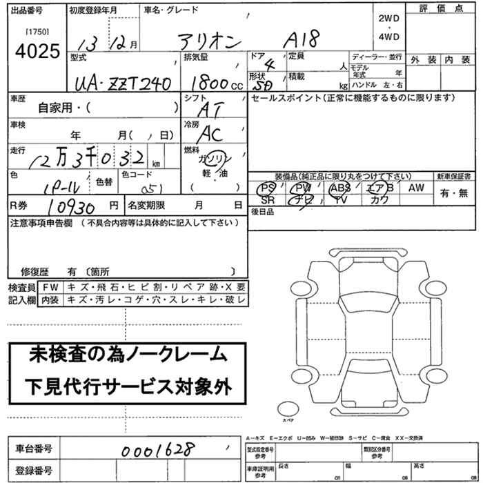 TOYOTA ALLION - лот 4025