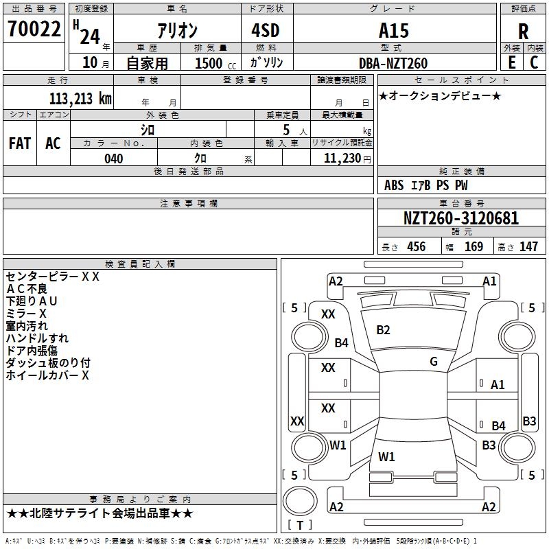 TOYOTA ALLION - лот 70022