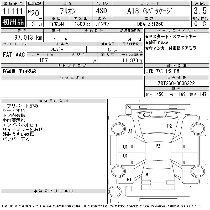 TOYOTA ALLION - лот 11111