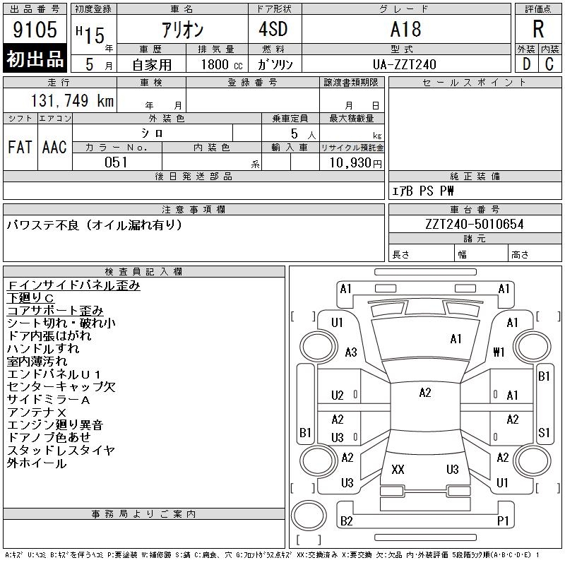 TOYOTA ALLION - лот 9105