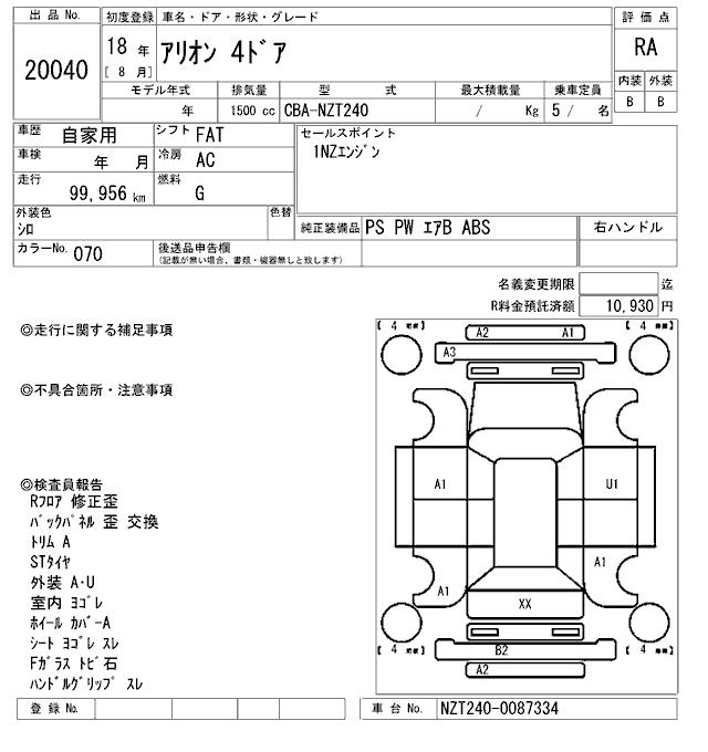 TOYOTA ALLION - лот 20040
