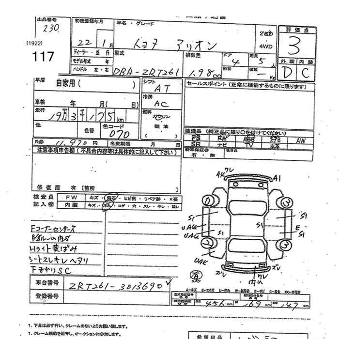TOYOTA ALLION - лот 117