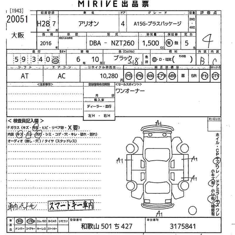 TOYOTA ALLION - лот 20051