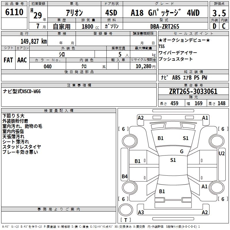 TOYOTA ALLION - лот 6110