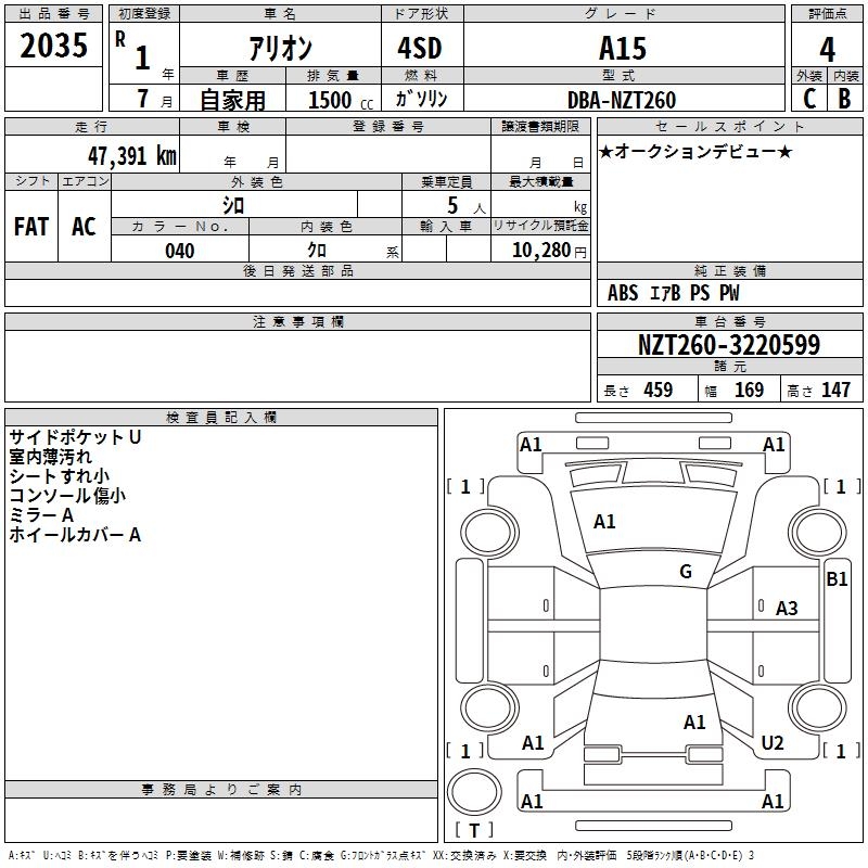TOYOTA ALLION - лот 2035