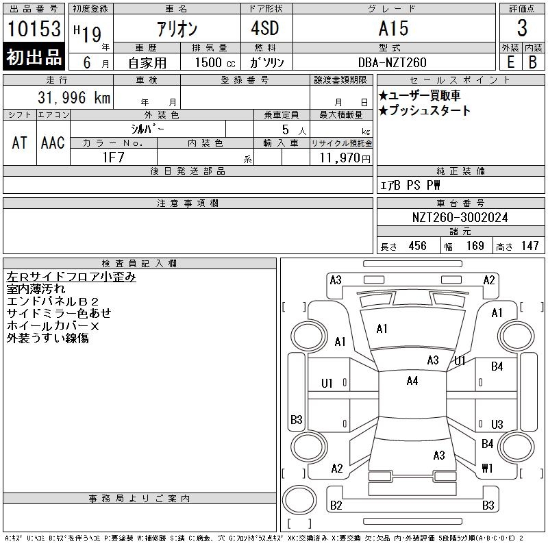 TOYOTA ALLION - лот 10153