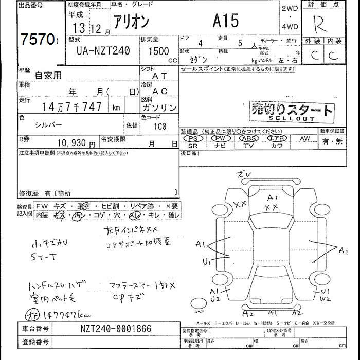 TOYOTA ALLION - лот 7570