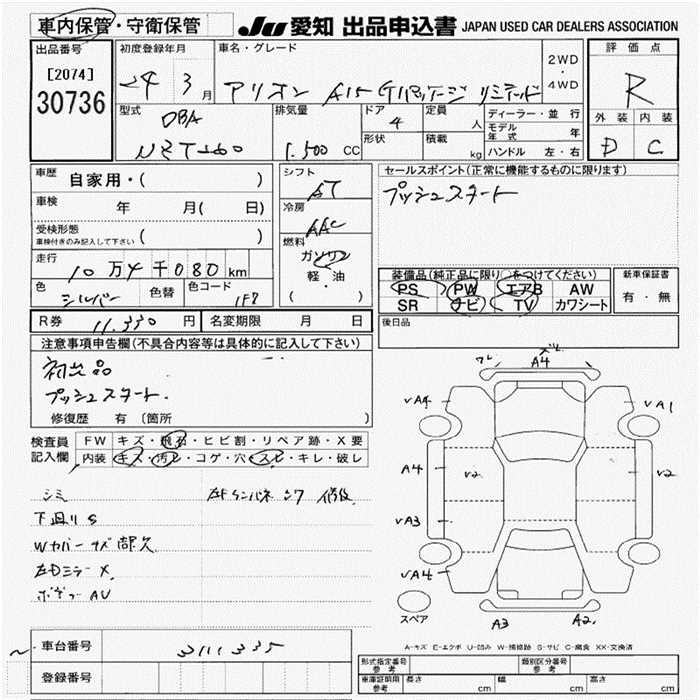 TOYOTA ALLION - лот 30736