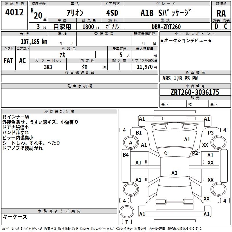 TOYOTA ALLION - лот 4012