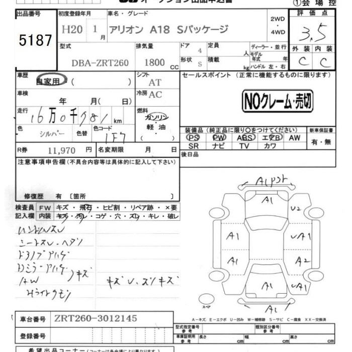 TOYOTA ALLION - лот 5187