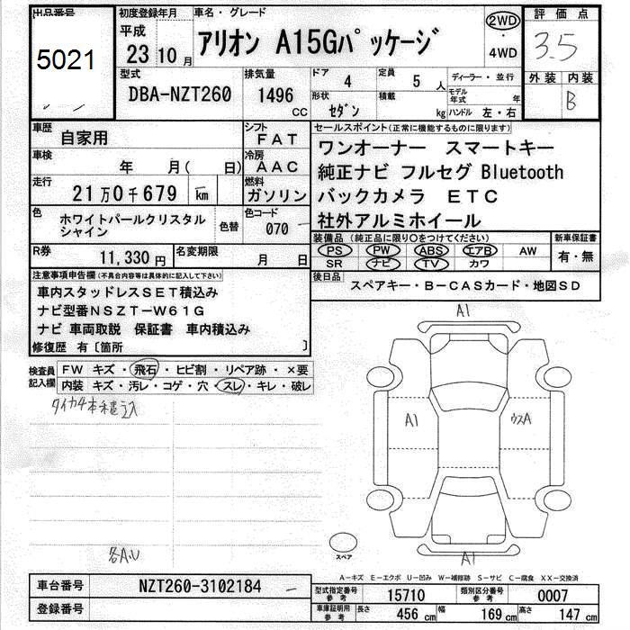 TOYOTA ALLION - лот 5021