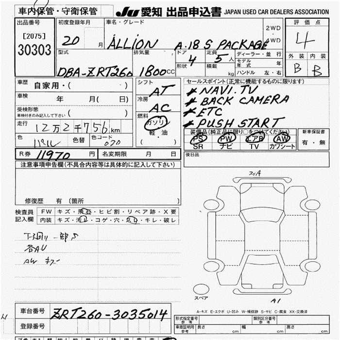 TOYOTA ALLION - лот 30303