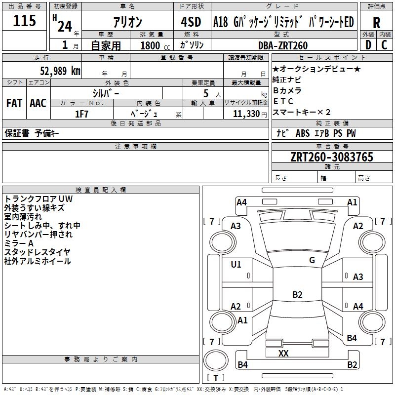 TOYOTA ALLION - лот 115