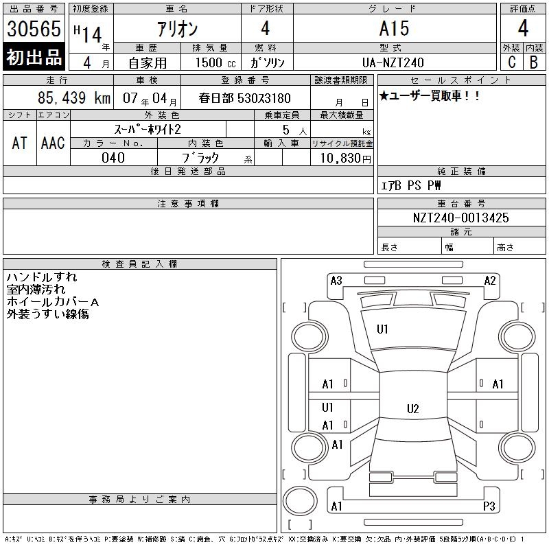 TOYOTA ALLION - лот 30565