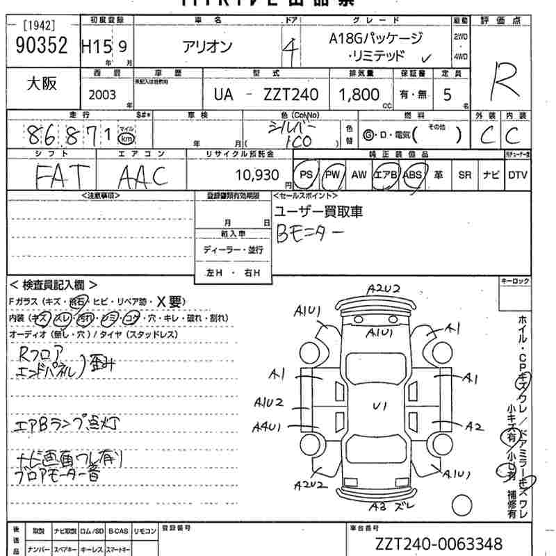 TOYOTA ALLION - лот 90352