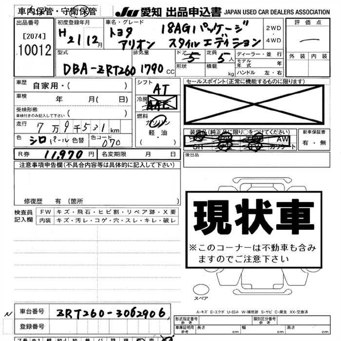 TOYOTA ALLION - лот 10012