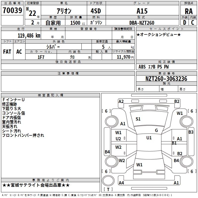 TOYOTA ALLION - лот 70039