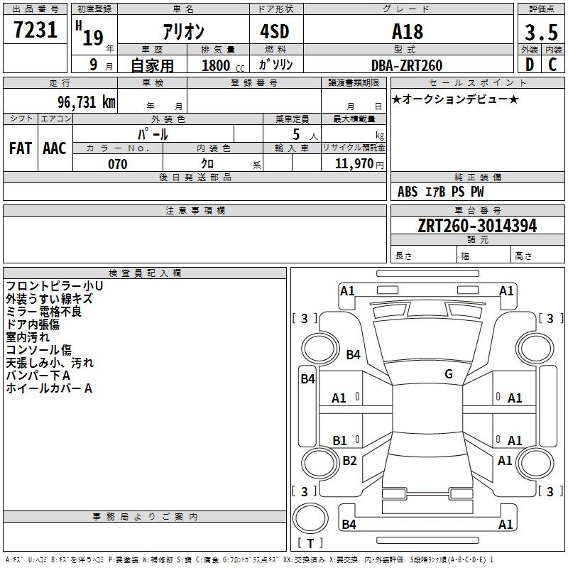 TOYOTA ALLION - лот 7231