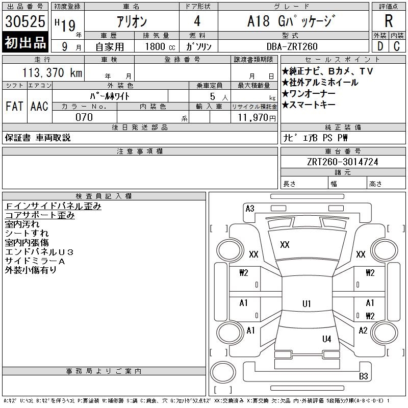 TOYOTA ALLION - лот 30525
