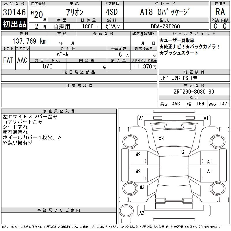 TOYOTA ALLION - лот 30146