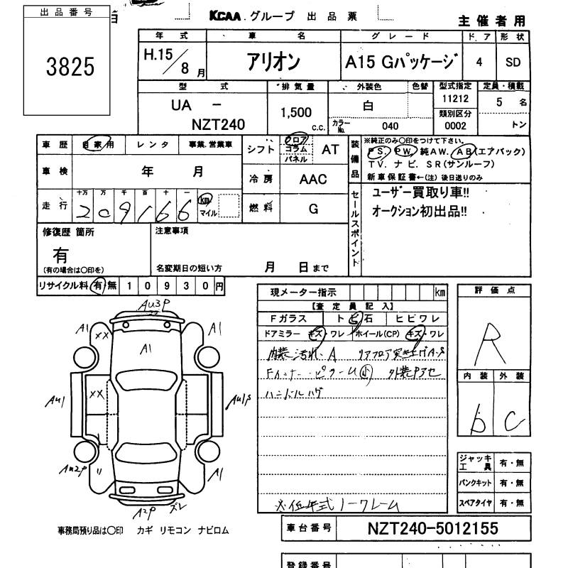 TOYOTA ALLION - лот 3825