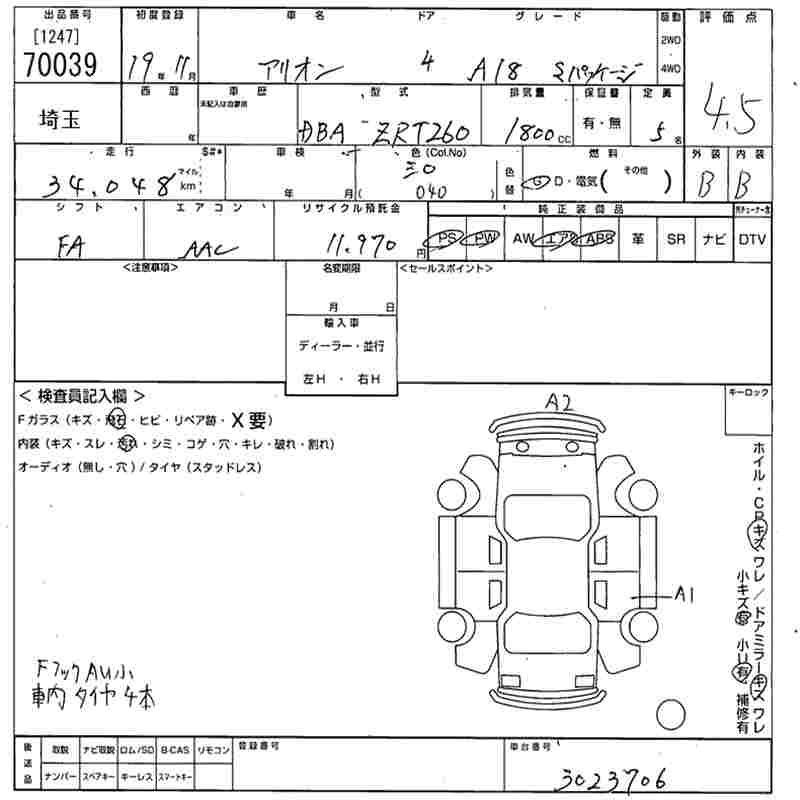 TOYOTA ALLION - лот 70039
