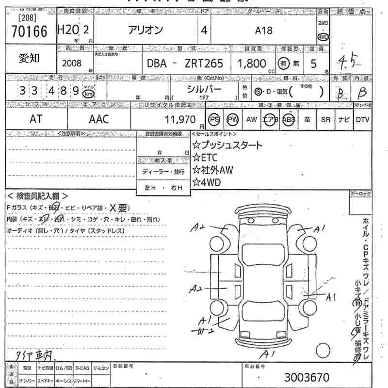 TOYOTA ALLION - лот 70166